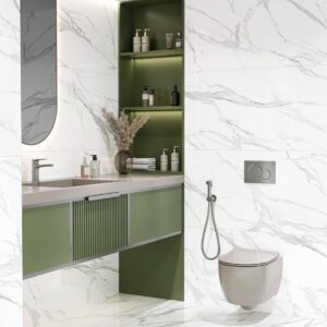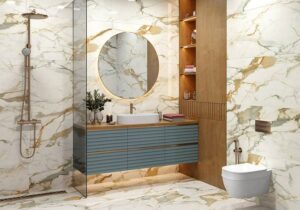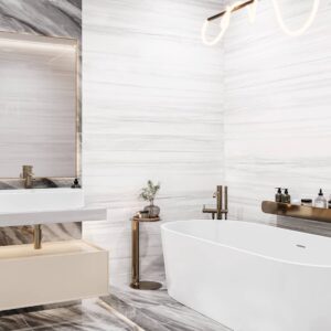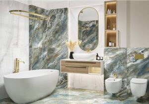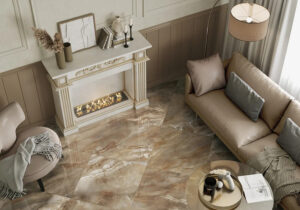 Дизайн керамической плитки может быть любым в зависимости от стиля комнаты. Современные коллекции этого покрытия могут быть выполнены под дерево, камень, имитировать мрамор, быть однотонными или с рисунками, в глянцевом или матовом исполнении — ассортимент керамических плит огромен.