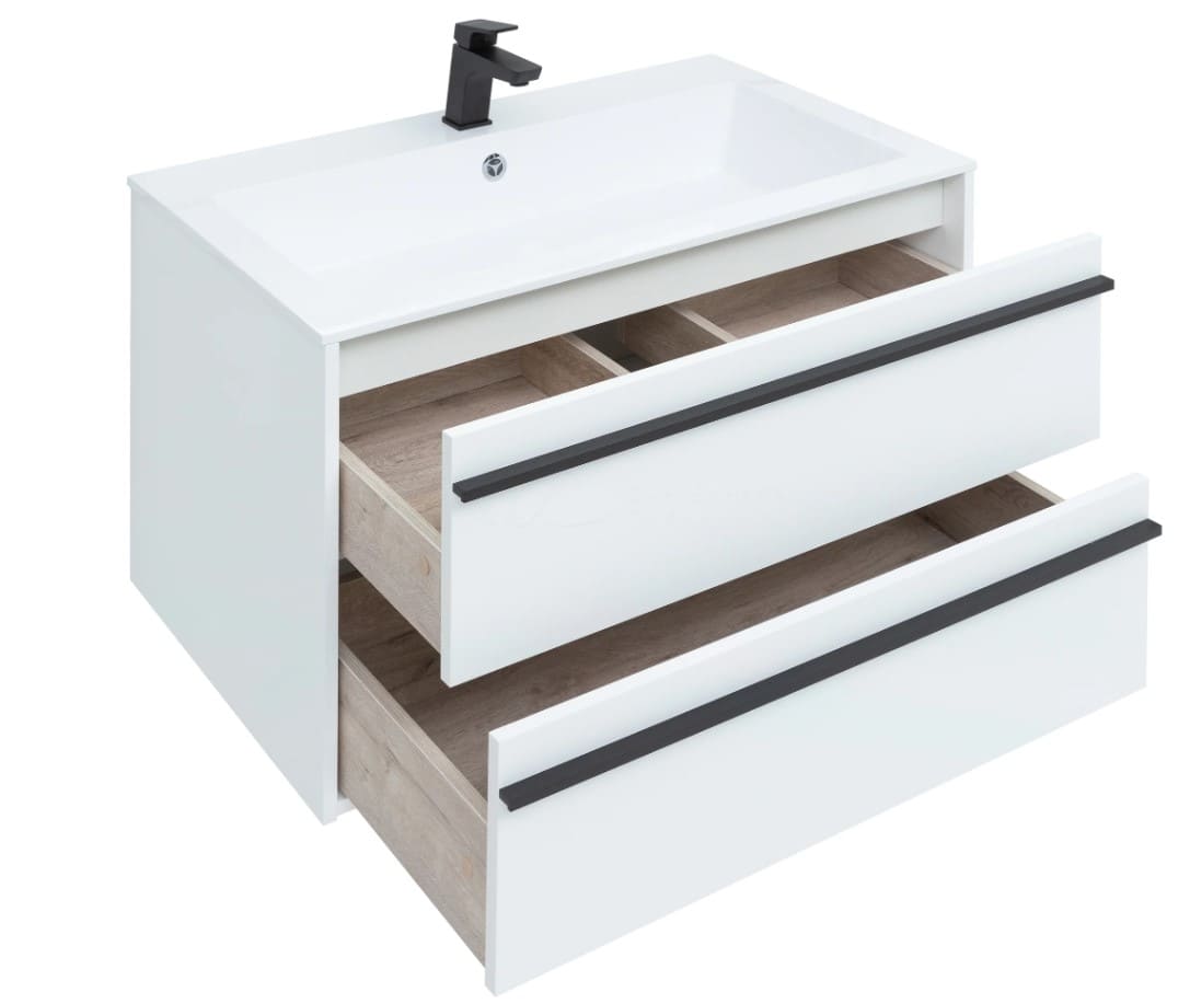 Основное преимущество тумбы Lino 90 — это ее подвесная конструкция, которая позволяет эффективно использовать пространство любой ванной комнаты, не загромождая его. Два вместительных выдвижных ящика с доводчиками обеспечивают удобное хранение всех необходимых туалетных принадлежностей и аксессуаров. Изящные алюминиевые ручки, расположенные в одной плоскости с боковыми стенками, не только украшают мебель, но и делают ее безопасной, исключая выступающие элементы.